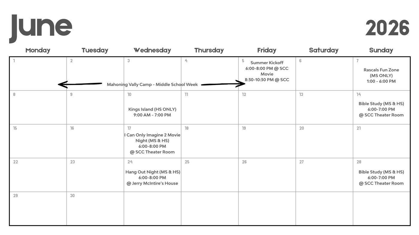 The Middle is a weekly program that meets on Wednesdays from 6:30-8:30 pm. We'll spend time hanging out, playing games, and more importantly, we'll worship through a lesson and singing, followed by gathering in small groups.