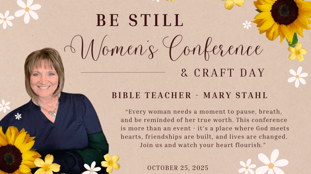 Ladies... Join us for a one-day women's event filled with biblical teaching, fellowship, and crafts. Step away from the busyness and into a space created just for you. At our BE STILL Conference, your heart will be refreshed, your spirit encouraged, and your faith renewed. Gather with other women for a day of worship, encouragement, and powerful truth. Come expectant - you will leave flourishing.